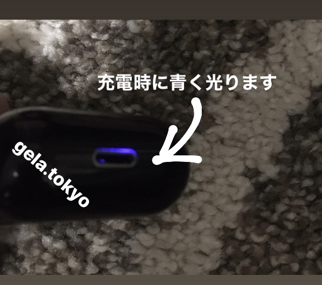 イヤホンの色をブラックにした場合、充電時の明かりが少し見づらいですが、暗いところで確認すると光っていることが確認できます。
